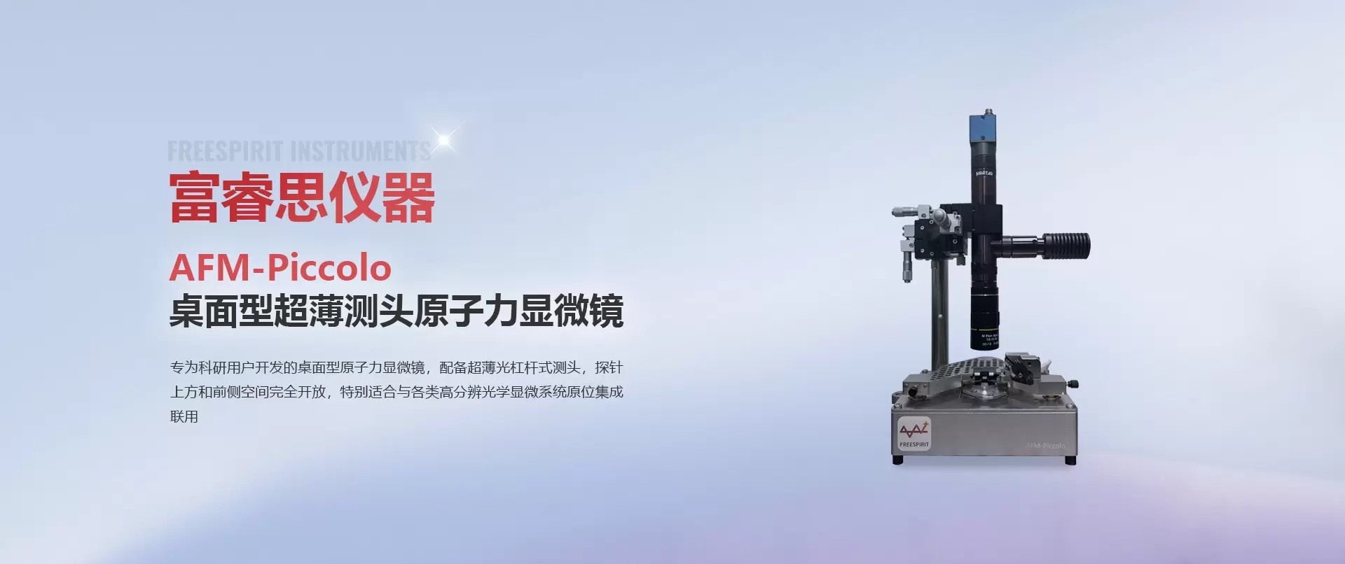 富睿思仪器(FreeSpirit Instruments)创立于2021年,是一家专注于表面精密测量设备自主研发与生产的高科技企业,主要产品包括原子力显微镜(AFM)、白光轮廓仪(WLI)等。