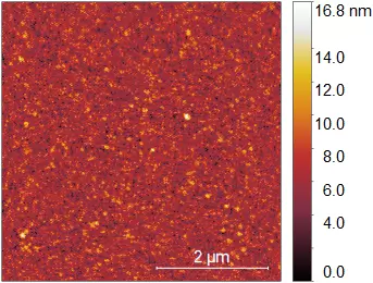 如下图所示,这是一张扫描范围为5 μm的OLED表面图像,整幅图的粗糙度为1.27 nm。