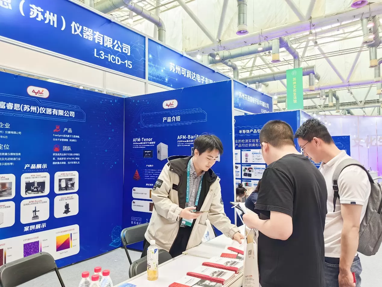 富睿思仪器在展台详细解读了自主研发的国产原子力显微镜、白光干涉显微镜的技术路线及应用前景,并与行业专家、潜在合作伙伴开展了深度交流。