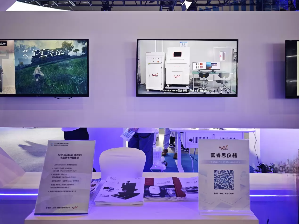 在本次展会上,富睿思重点介绍了自主研发的国产高端原子力显微镜(AFM)和白光轮廓仪(WLI),深入解读了产品取得的技术突破及在半导体、显示等领域的创新应用场景,充分彰显了富睿思在精密检测与微观表征领域的硬实力。富睿思展台吸引了众多国内外参会代表、专业观众和行业专家的驻足观看与交流。