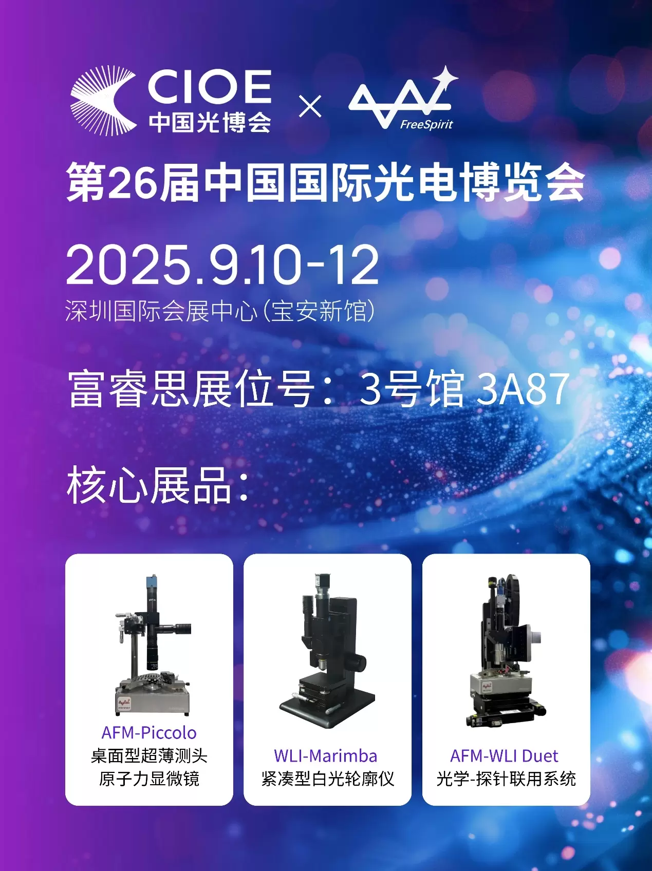 富睿思仪器将携三款核心产品参加本次展会,在3号馆精密光学展&摄像头技术及应用展3A87号展位,全方位展示国产白光轮廓仪(WLI)、原子力显微镜(AFM)的独有技术与应用场景。