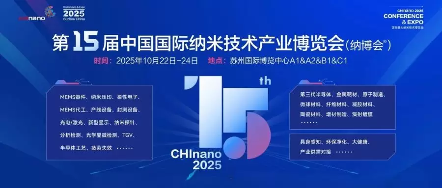 第十五届中国国际纳米技术产业博览会(简称“纳博会”,CHInano 2025)将于2025年10月22日至24日在苏州盛大举办。