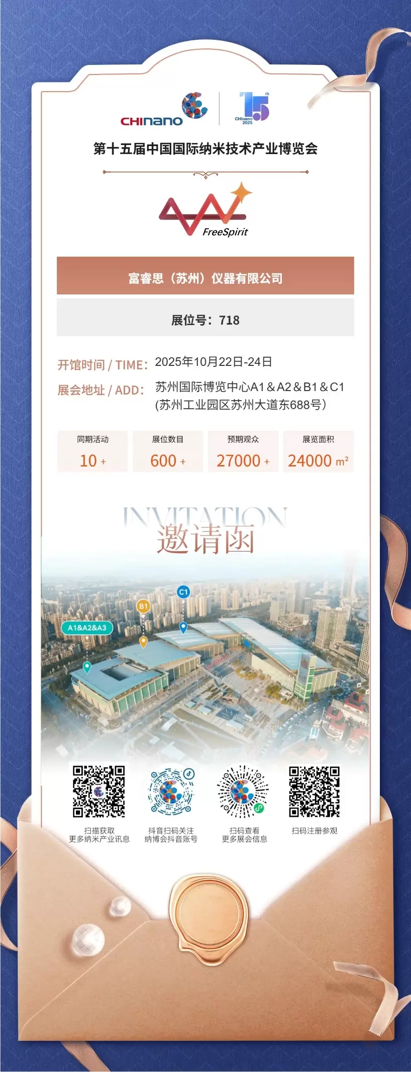 我们诚挚邀请您莅临苏州国际博览中心B1馆718号展位,现场感受前沿量测技术的创新力量,深入交流技术突破与产业落地的最新进展。期待与您携手共谋纳米科技的高质量发展,共同谱写精密检测技术的新篇章。